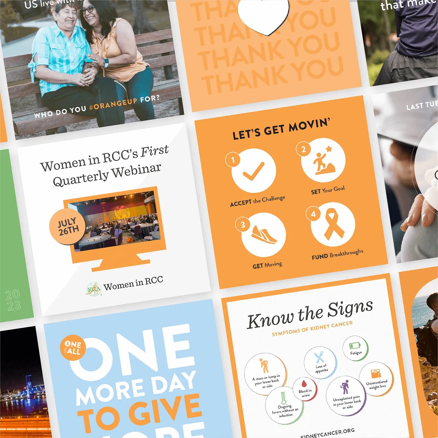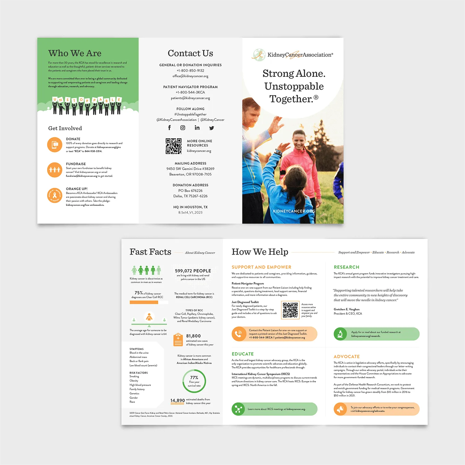 We're honored to work with this international organization that does so much for those with kidney cancer. Our goal was to develop a brand that spoke to kidney cancer patients and their families, as well as doctors and researchers in the field. KCA is an awesome organization led by some great people. We're grateful to have put together some smart work for this very cool client.